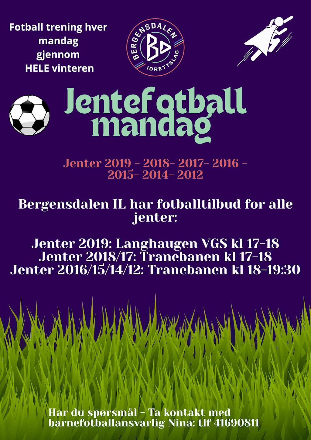 Da er du hjertelig velkommen til vårt jentefotball-mandag gjennom hele vinteren!