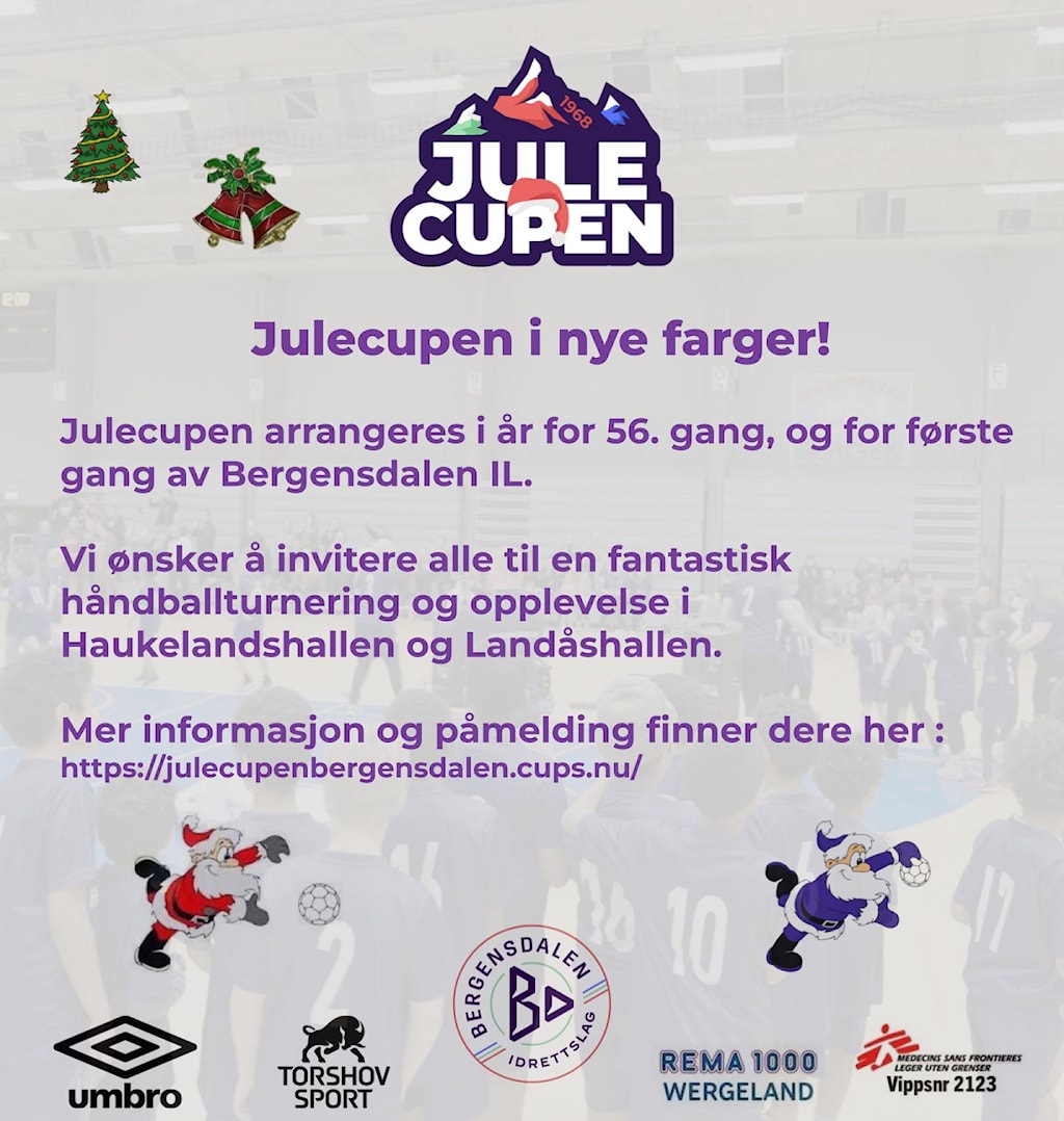 – meld på laget nå! Selv om det fortsatt er en stund til jul, er planleggingen i gang – og vi gleder oss allerede til årets Julecup! Vi inviterer alle lag opp til og med J/G16 til å delta i Julecupen 2025 i Bergensdalen!